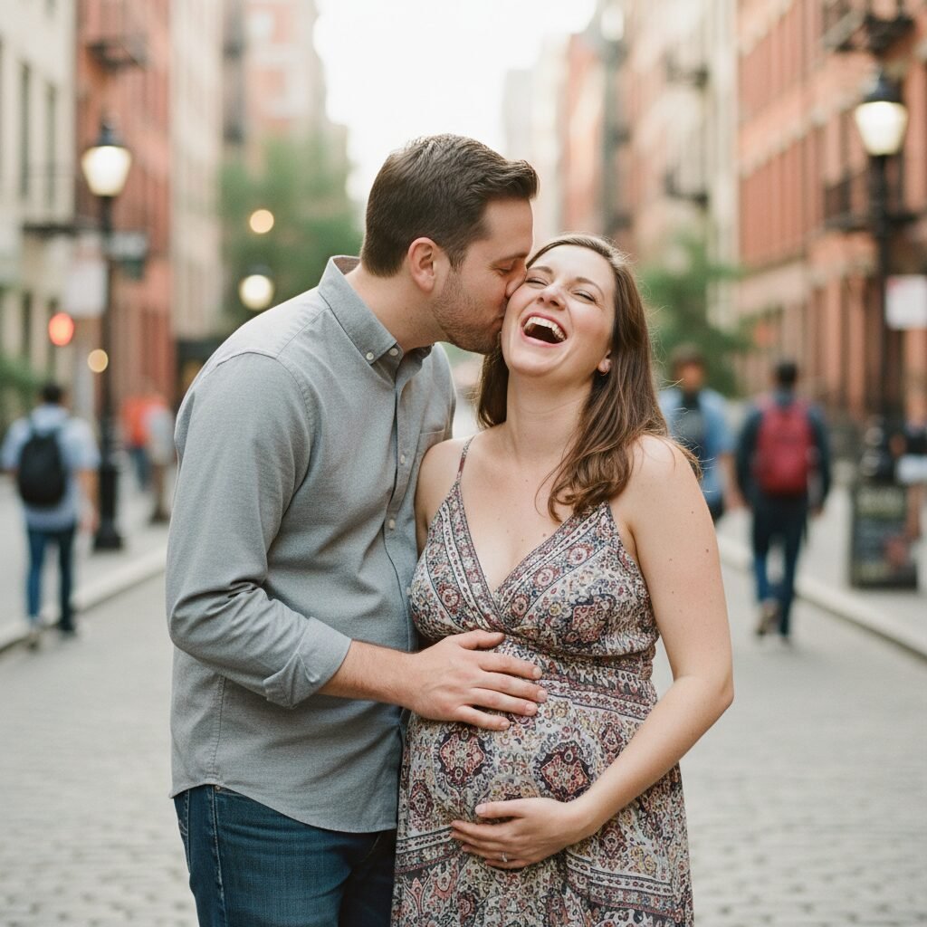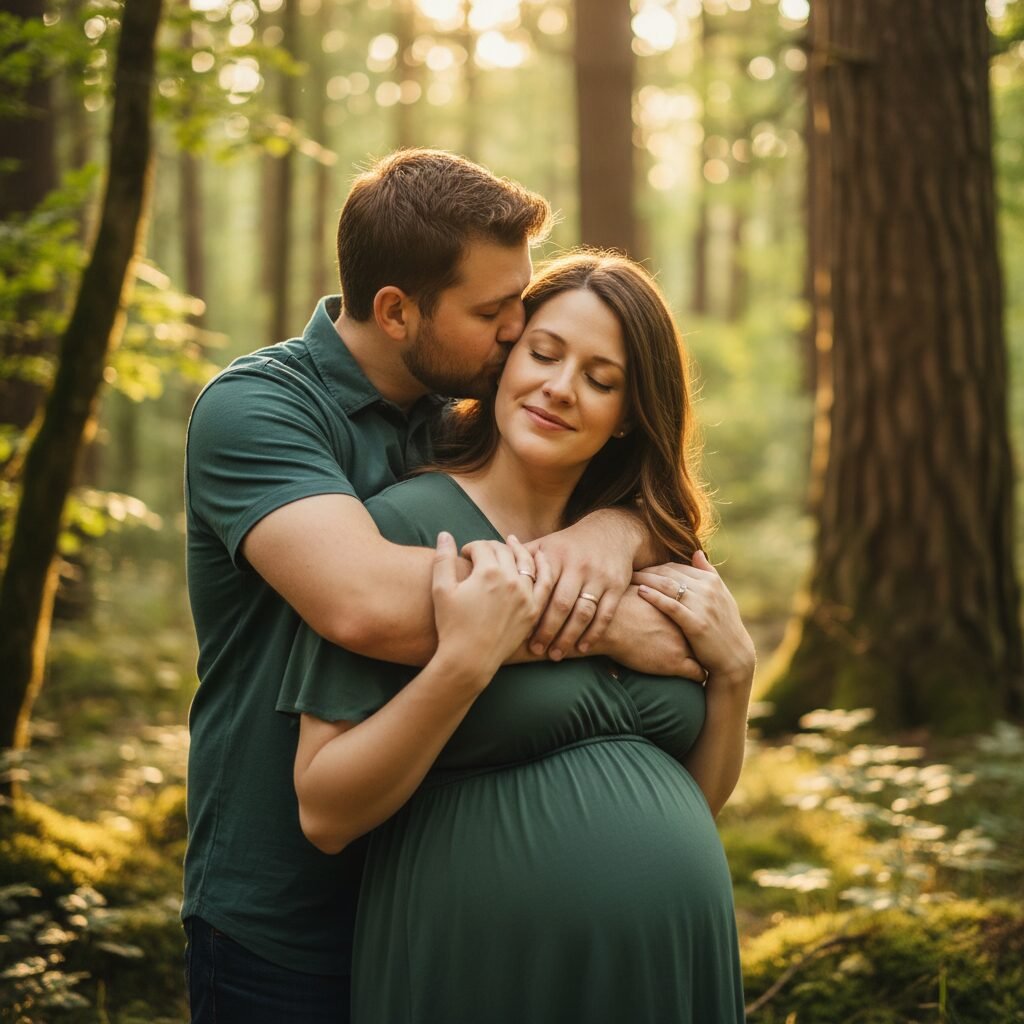 This is a classic for a reason, but with a modern twist. The pregnant partner can gently cup their partner’s face, or they can stand in a simple embrace. The partner then leans in and places a gentle, lingering kiss on their forehead. The key is for the pregnant partner’s eyes to be closed, savoring the moment. This creates a feeling of peace and tenderness.
