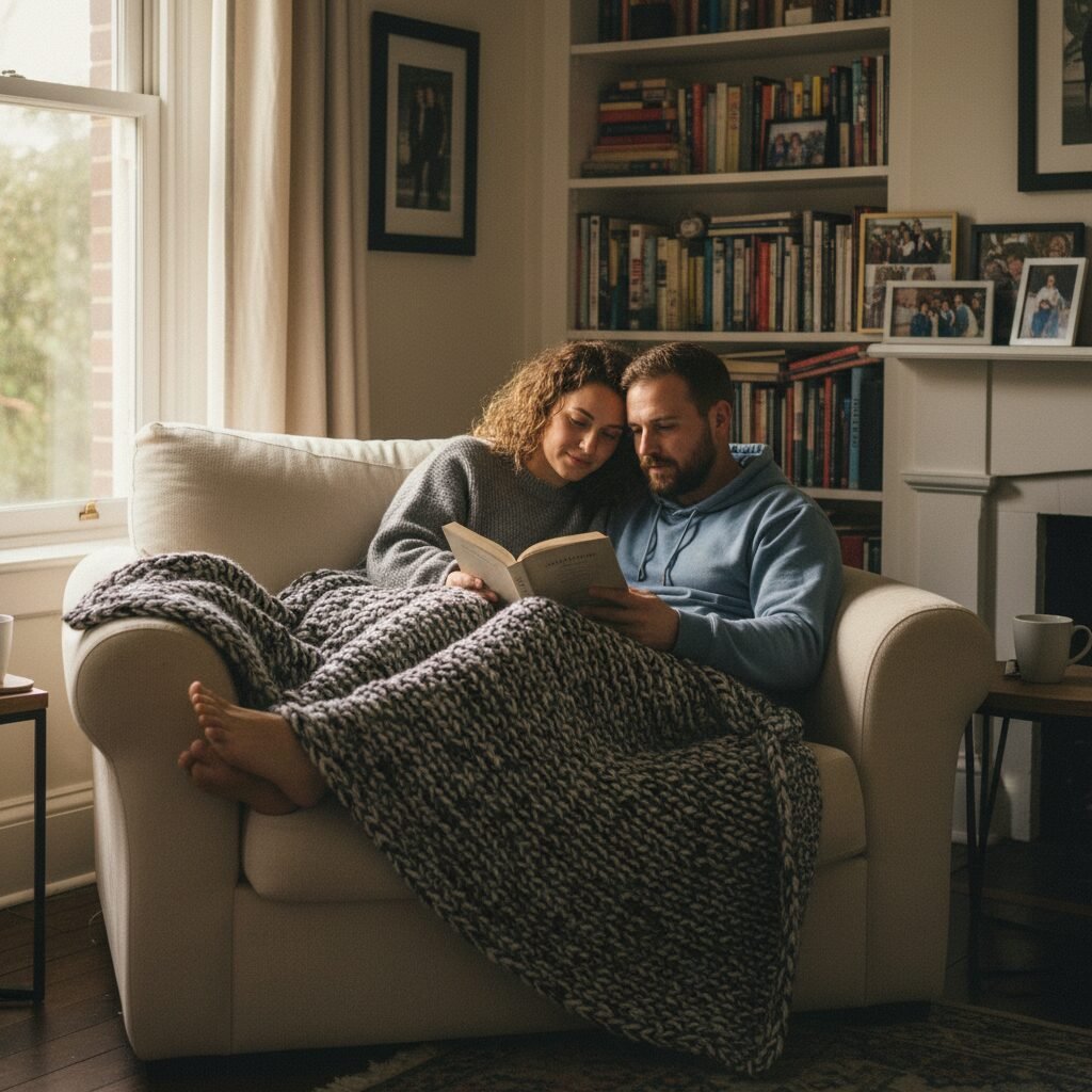 Find a comfortable spot and just be together. Cuddle up on a couch, lie in the grass, or lean against a tree. Forget the camera is there and just talk, hold each other, and exist in the moment. Let the photographer move around you, capturing the real, in-between moments.