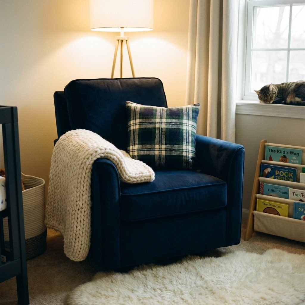 - Reading Light: A floor lamp next to the glider provides focused light for reading bedtime stories.