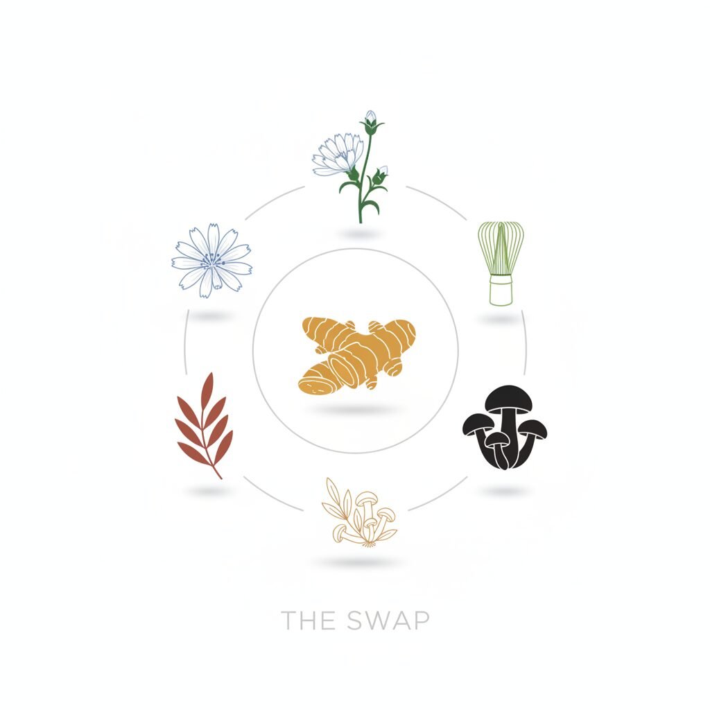 | Roasted Chicory Root | Dark, Rich, Roasted, Slightly Bitter | Gut Health & Blood Sugar Stability | Prebiotic Fiber (Inulin) | The person who deeply misses the taste and ritual of dark roast coffee. |