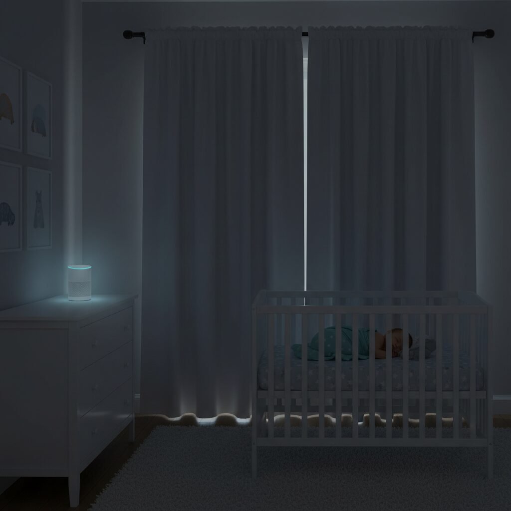 When you say the magic words, Alexa will simultaneously darken the room and start the white noise, creating powerful sleep cues for your baby.