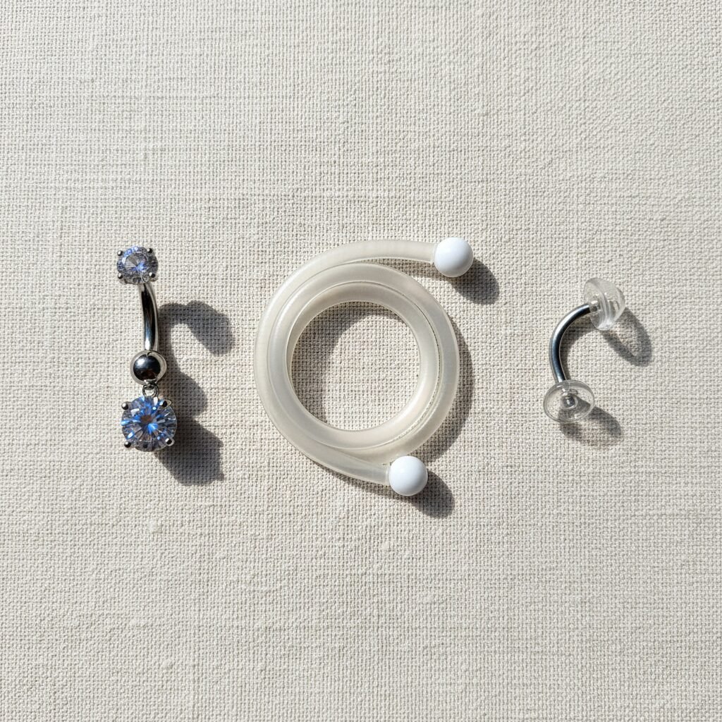 Piercing Retainer Clear, Flexible Plastic High Keeping the hole open in late pregnancy or if jewelry is too irritating. Extremely lightweight and discreet; Minimizes pressure on the piercing site. Not decorative; Can be easier to lose.