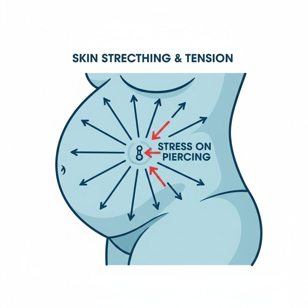 • Skin Stretching: This is the biggest factor. As the skin on your abdomen thins and tightens, it can pull on the piercing hole. This can cause the hole to widen, migrate (shift from its original position), or even tear if the jewelry is too tight or gets snagged.