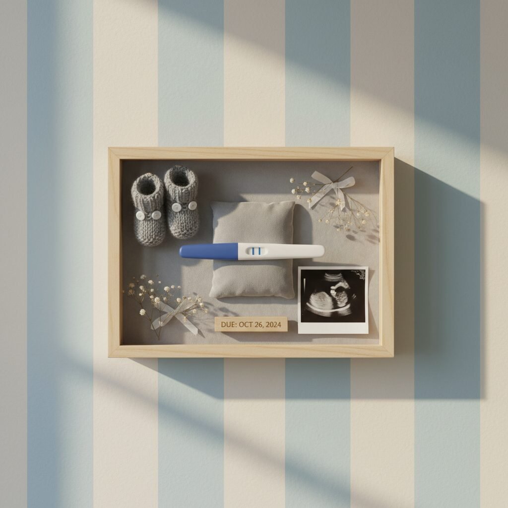 A shadow box is a classic and beautiful way to create a visual narrative of your journey’s beginning. It allows you to contextualize the pregnancy test by surrounding it with other meaningful items, turning a single memento into a rich, multi-dimensional story.