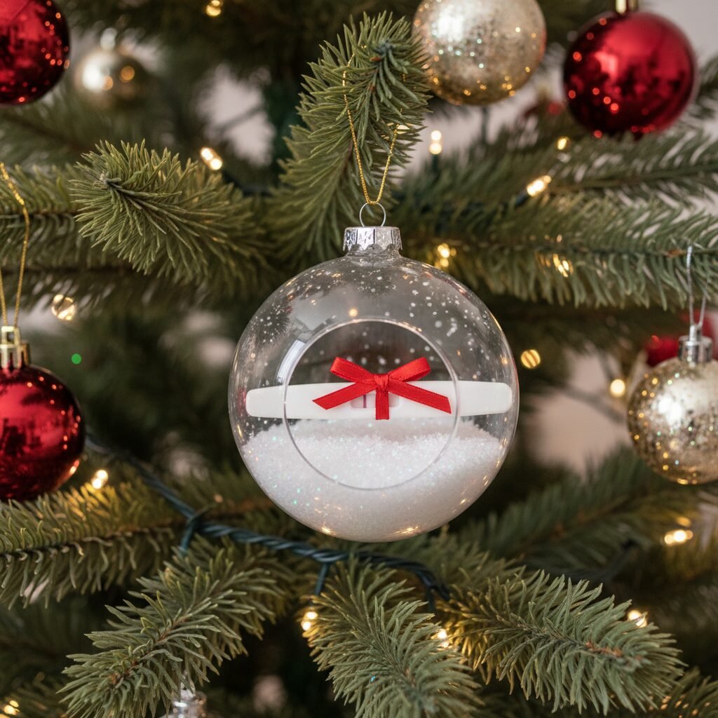 This is one of the simplest yet most meaningful methods. You will need a clear, fillable ornament, which can be found at any craft store. They come in glass or plastic and various shapes.