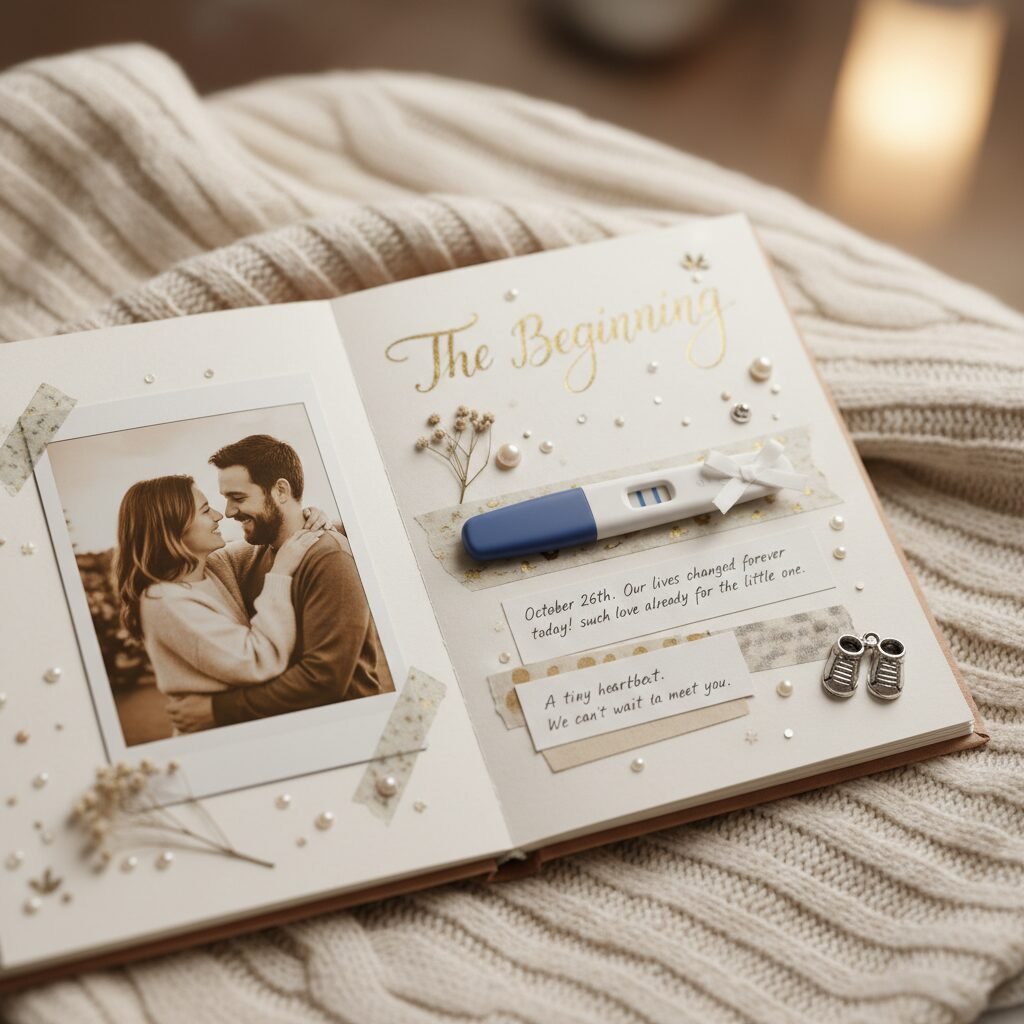 If you’re a memory keeper who loves journaling and photos, dedicating the first page of your baby’s scrapbook or album to the positive test is a natural fit. This method focuses on telling the whole story of that pivotal day, with the test itself as the centerpiece.