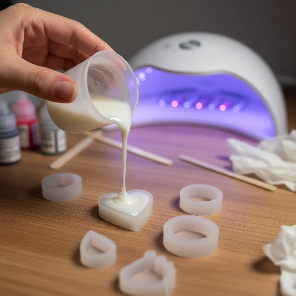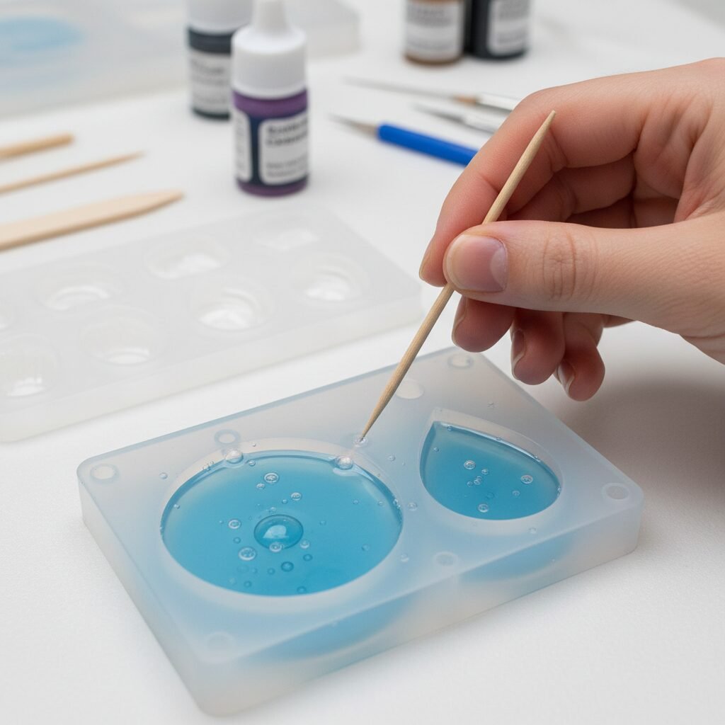 Carefully pour the resin-milk mixture into your silicone molds or bezels. Fill them slowly to minimize bubbles. For bezels, you might pour in layers, allowing each layer to partially cure before adding the next, especially if you’re embedding items. Use a toothpick or a fine-tipped tool to gently guide the resin into all corners and to pop any surface bubbles.