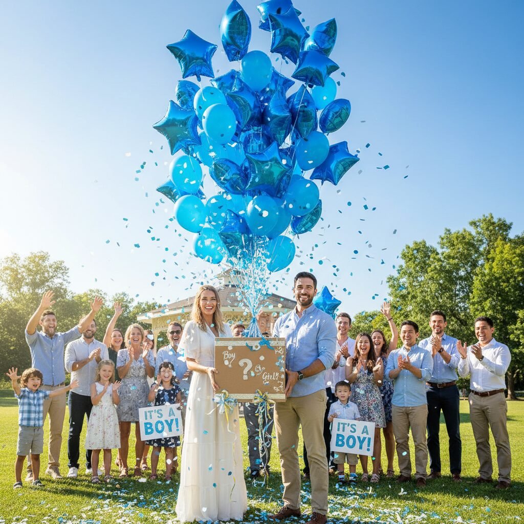 • The Classic Balloon Box: A large, decorated cardboard box is opened by the parents-to-be, releasing a cascade of pink or blue helium balloons. It’s a classic for a reason—the visual is stunning!