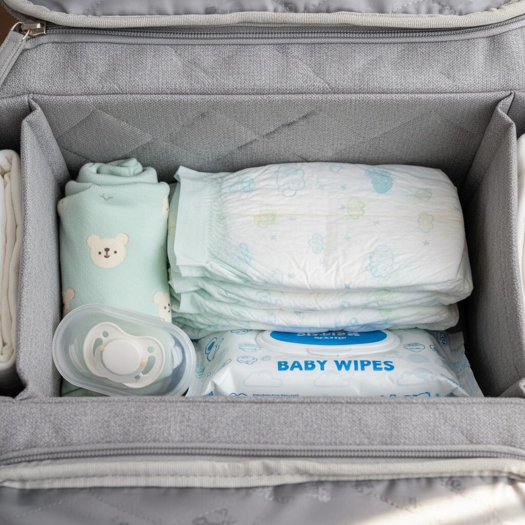 • Diapers: The golden rule is one diaper for every two hours you plan to be out, plus at least two extras. For a 4-hour trip, pack 4 diapers. You can never have too many.