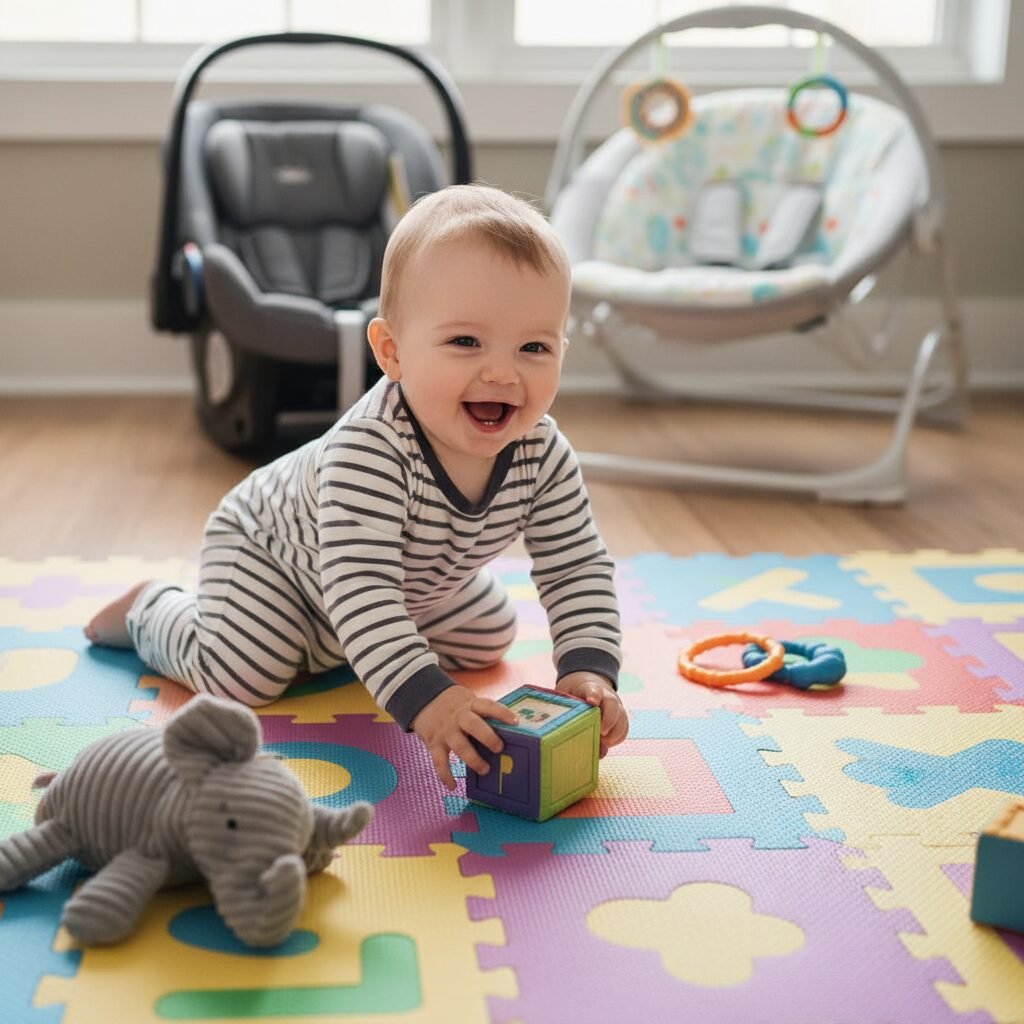 - Prioritize Floor Time: Make the floor your baby’s primary play area. A clean blanket or play mat on the floor provides a safe, open space for your baby to move freely, practice tummy time, roll, and explore without pressure on their head. This encourages natural movement and muscle development.