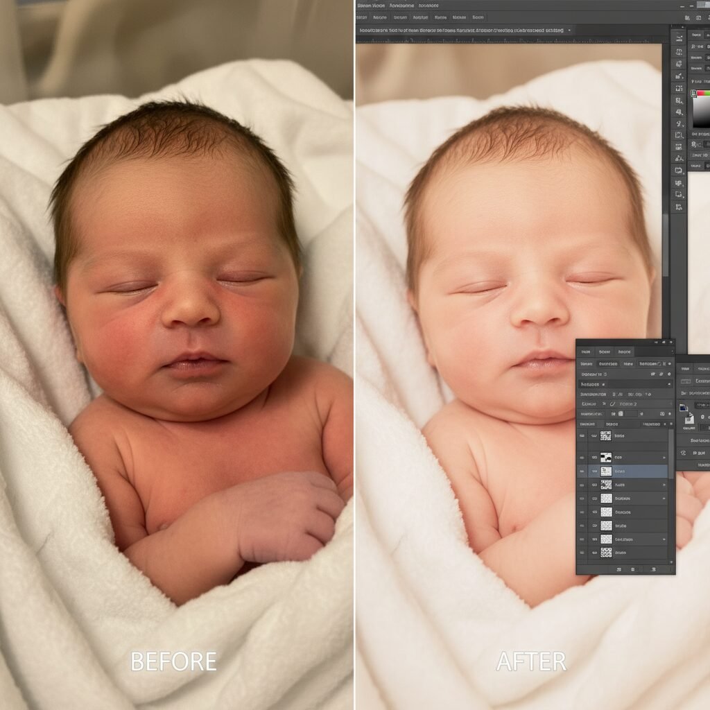 | Unnatural, ‘Instagram Filter’ Colors | Stick to natural, warm skin tones. Avoid heavy-handed color filters that make the baby look orange or magenta. Use the Temperature and Tint sliders in Camera Raw for subtle, realistic adjustments. |