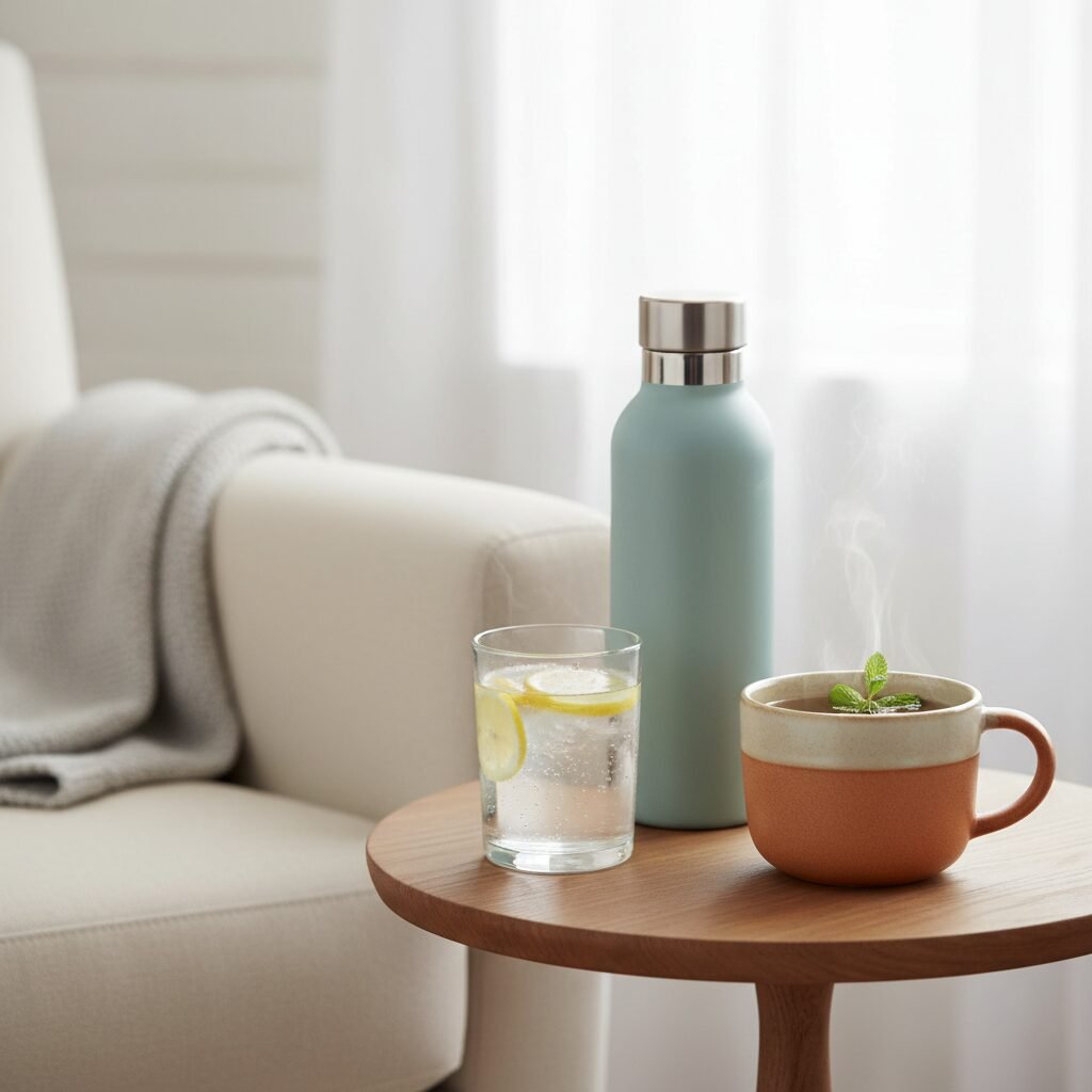 - Keep Water Accessible: Place water bottles in every room where you spend time, especially near your nursing stations.