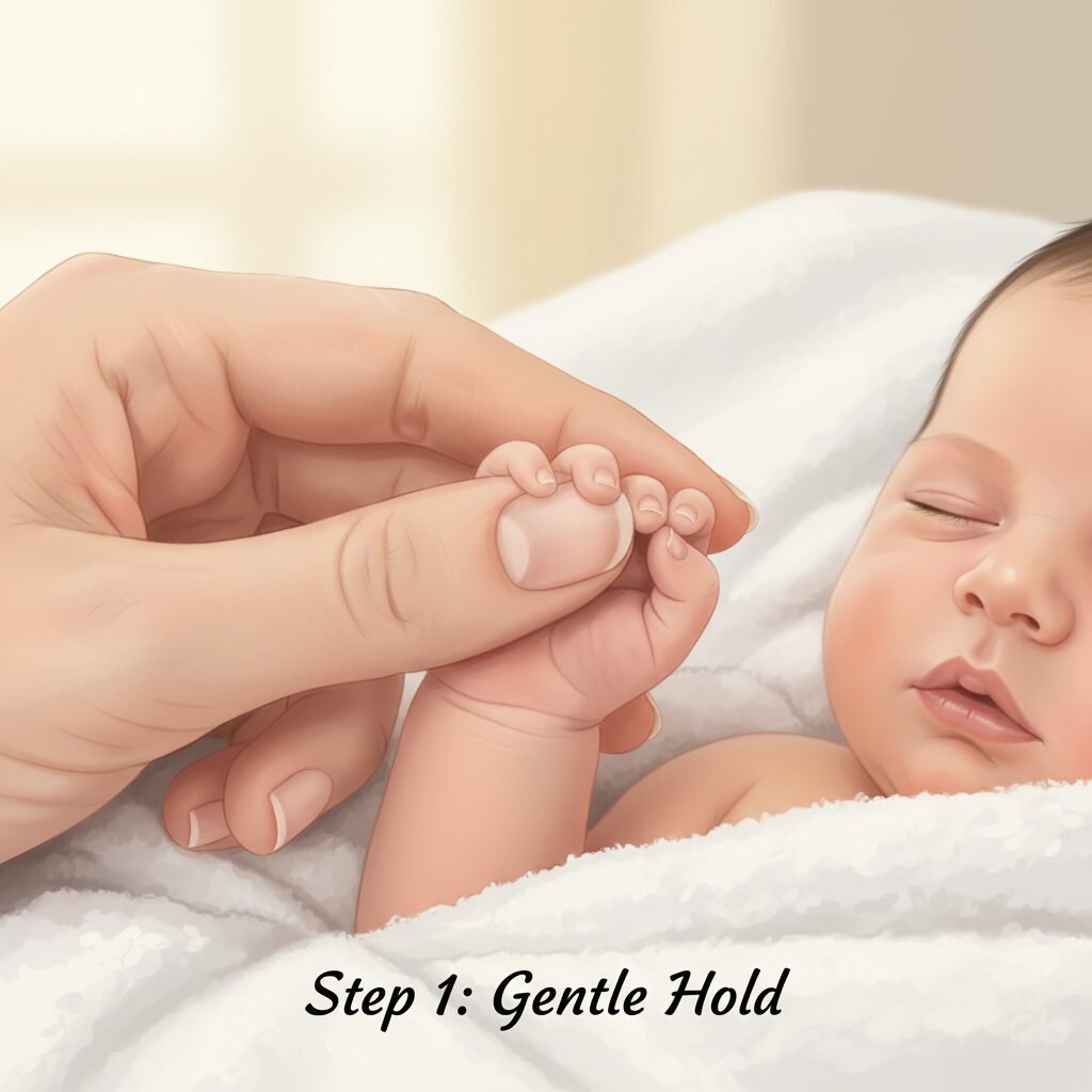 - Isolate One Finger: Gently take one of your baby’s tiny fingers. Use your thumb and forefinger to hold it securely but without squeezing.