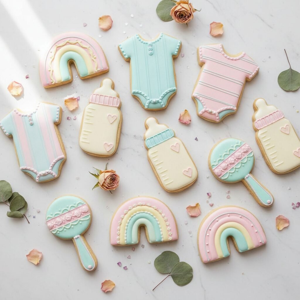 • The Iconic Onesie: A miniature, edible version of a baby’s first outfit. This versatile shape is a blank canvas. It can be decorated with simple patterns like polka dots or stripes, personalized with a monogram, or adorned with tiny piped details like buttons and collars. Using a ‘wet-on-wet’ icing technique for patterns can create a beautifully seamless look.