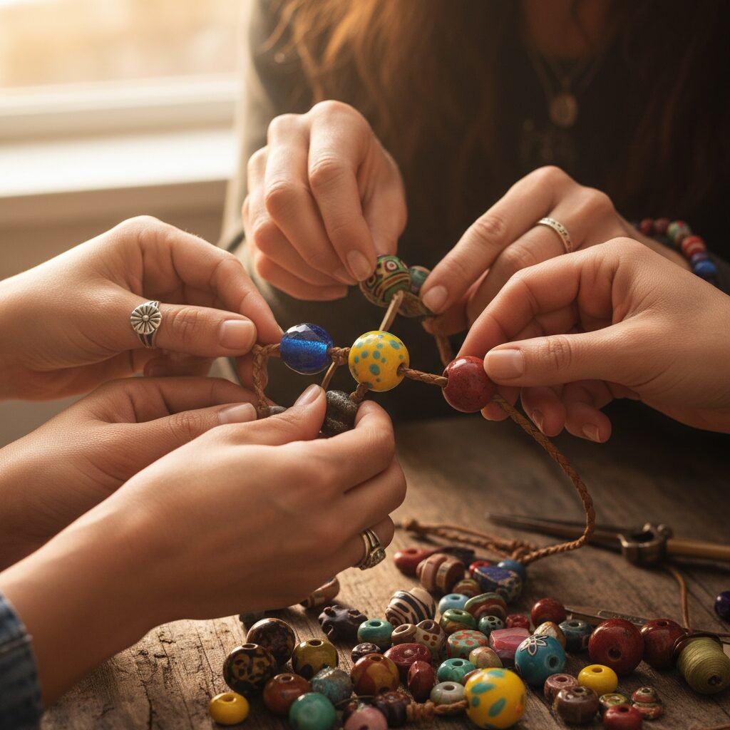 - Creating a Birthing Necklace: Each guest brings a bead that has a special meaning or represents a wish for the mother (strength, patience, peace). During the ceremony, each person shares their wish as they add their bead to a string, creating a tangible, wearable symbol of her community’s support that she can hold or wear during labor.