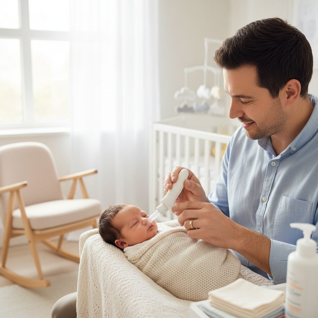 - Nasal Aspirator: Babies are ‘obligate nose breathers,’ meaning they primarily breathe through their noses. When they get congested, it can interfere with feeding and sleeping. A good nasal aspirator (whether a simple bulb syringe or a more advanced model like the NoseFrida) is absolutely essential.